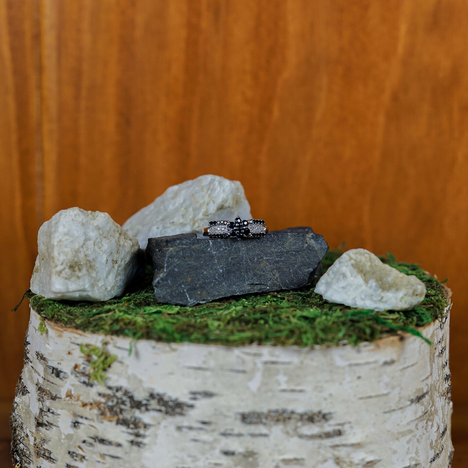 0.45ct Genuine Blue Sapphire with Black and White Natural Diamonds Ring