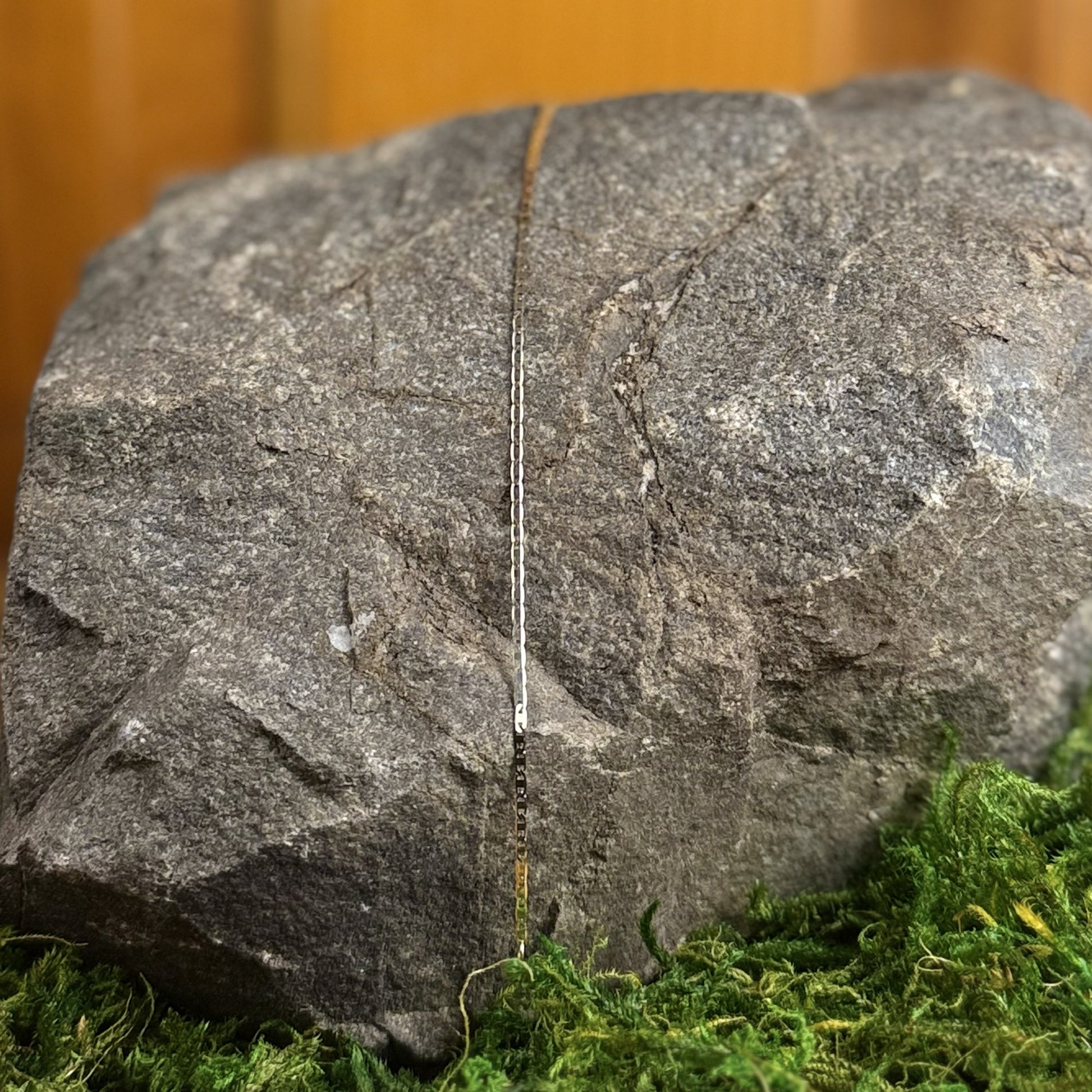 A mariner chain, also known as an anchor chain, is a style of jewelry chain characterized by a series of interlocking, oval-shaped links, each featuring a horizontal bar running across its center. This design is directly inspired by the heavy-duty chains used to anchor ships, giving it a distinctive nautical aesthetic.