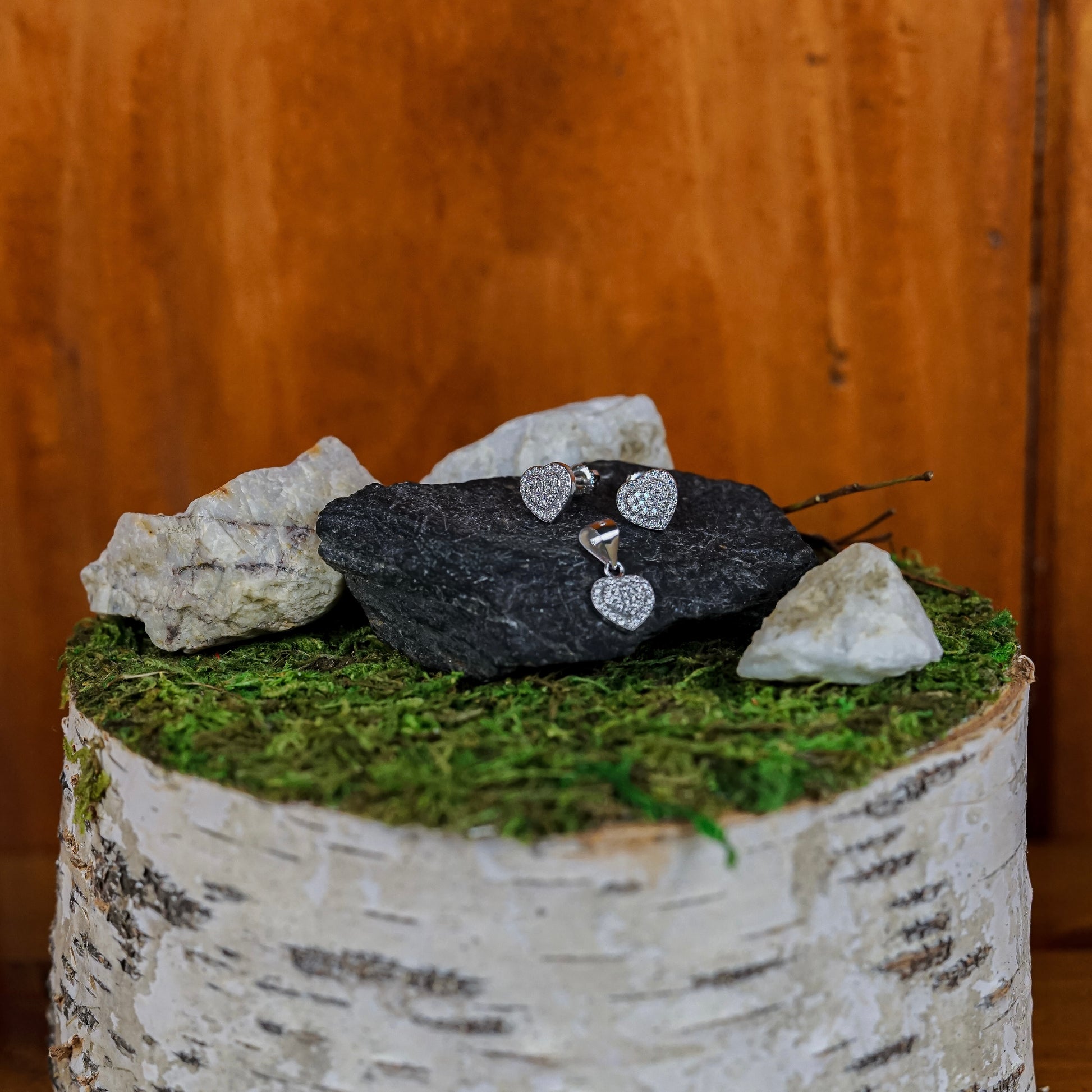 Moissanite Heart Pendant and Earrings