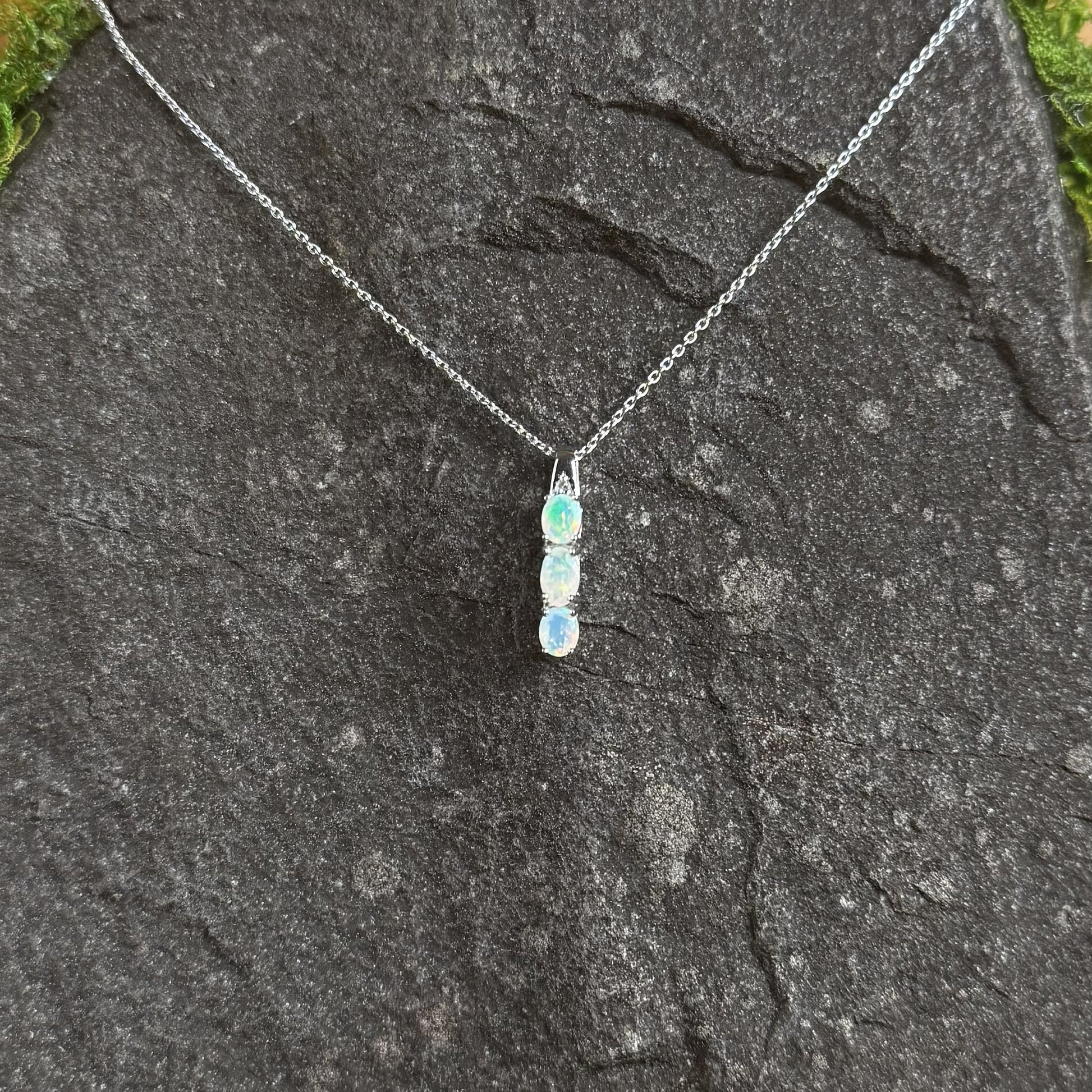 Triple Stack Oval Ethiopian Opal Pendant with Chain